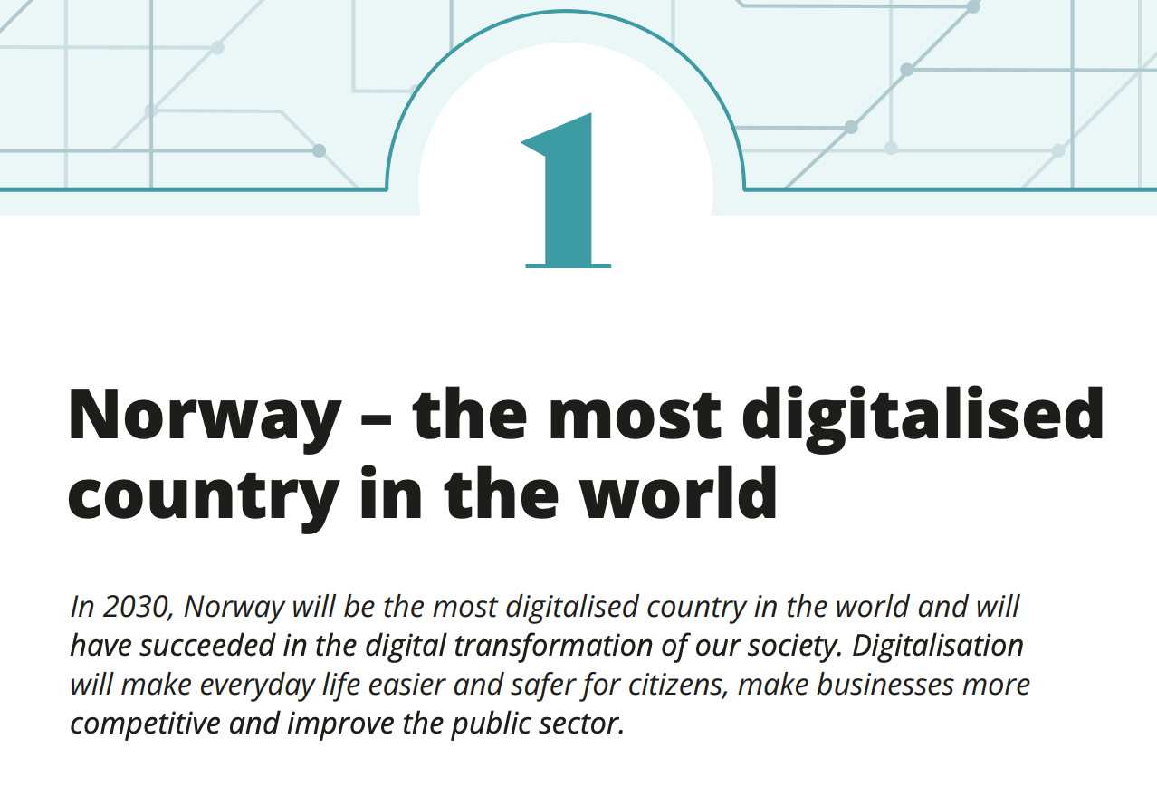 Backed by this financial stability, the Norwegian Ministry of Digitalisation has set a bold goal: To become the most digitalised country in the world by 2030.